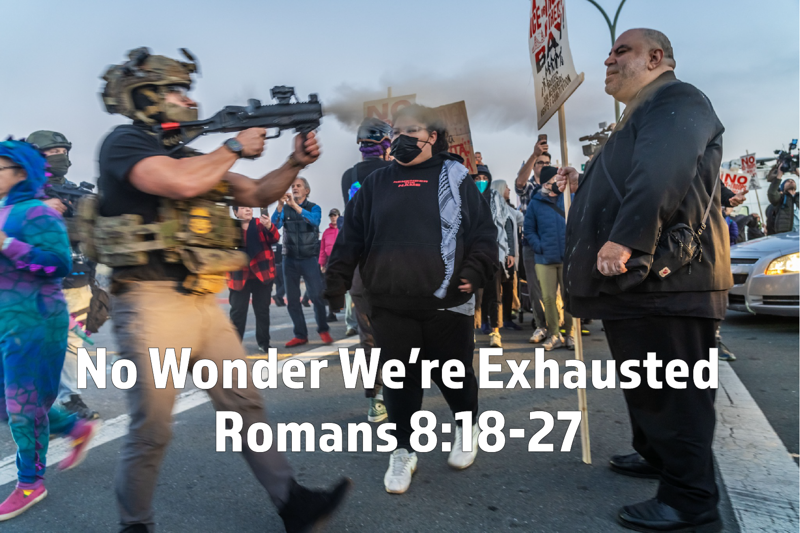 Our government sent troops into our local Bay Area this week. It was a vivid and vicious reminder of the way in which we as human beings – and the systems we live in – are corrupted by sin. Our own government, in a land that claims to be one in which all are equal, demonstrates the corrupting and corruptive power of sin. The Supreme Court recently ruled in Vasquez Perdomo v. Noem, that government officials can stop and detain people merely because of their race, language or appearance. Maybe that’s what we saw in the government agents shooting Rev. Jorge Bautista (a Spanish-speaking, brown pastor of our Presbytery) in the face with a smoke grenade this week at a peaceful protest when he was invoking scripture against the work of ICE.